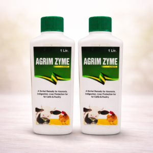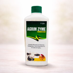Agrim Zyme Liquid is a specially formulated herbal digestive enzyme tonic designed to improve digestion, support liver function, and enhance overall health in livestock. It helps relieve common digestive issues such as gas, acidity, bloating, and constipation, ensuring better nutrient absorption and improved productivity.